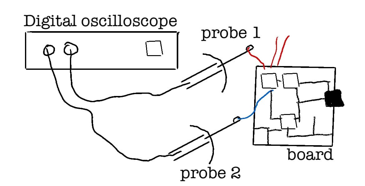 After a few days, we got an evaluation board with a chip of the same family that we were going to use in the hardware. With that board I was able to start testing. To test, I had to solder half a dozen very thin wires on the board and use a digital oscilloscope. I had to analyze the data coming in and out using several tools.
